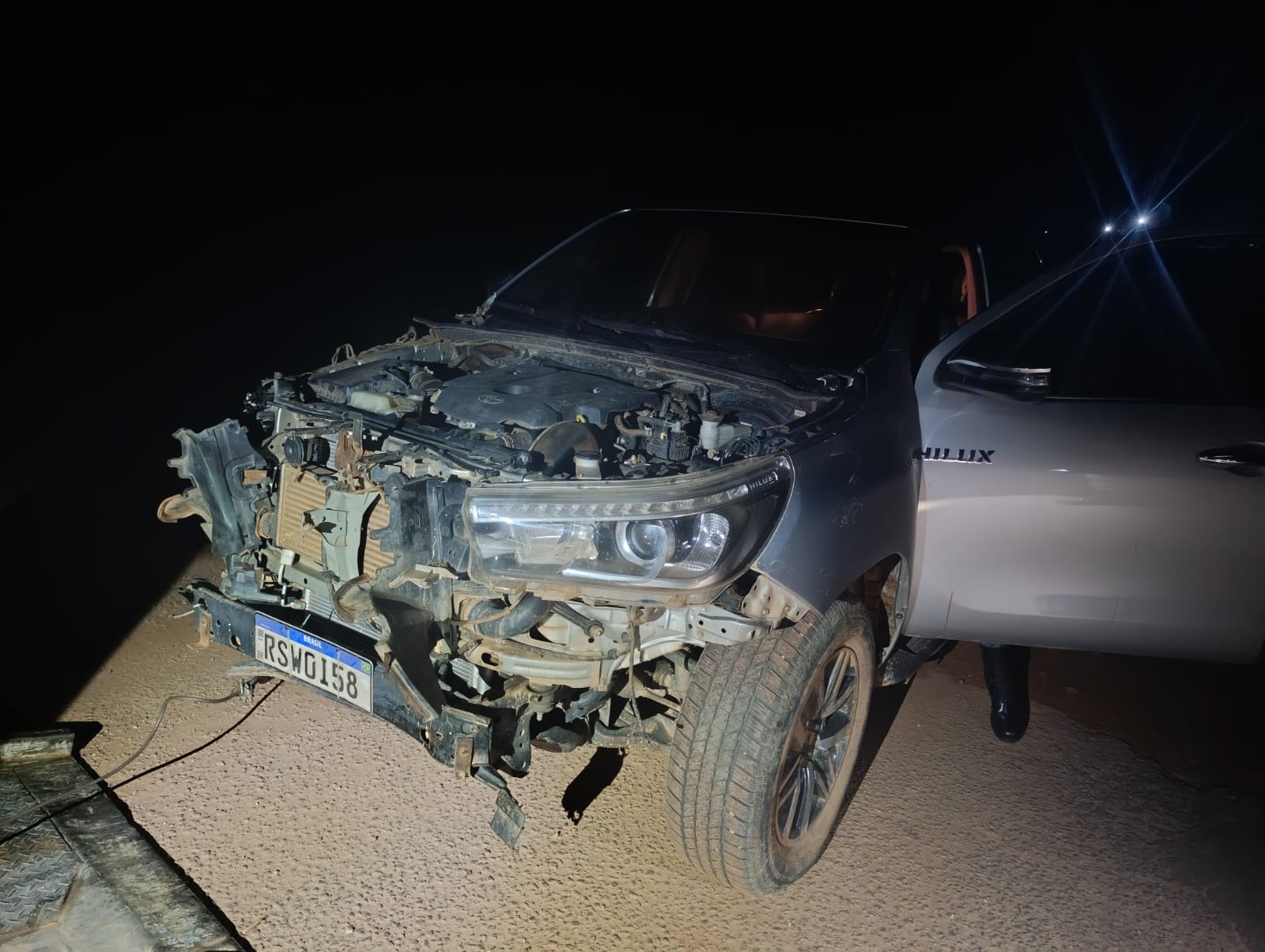 Durante patrulhamento ostensivo realizado na zona rural de Ji-Paraná, nas proximidades do aeroporto, na noite da última quinta-feira, 30, uma guarnição do grupamento do distrito de Nova Colina localizou uma caminhonete Toyota Hilux estacionada de forma suspeita à margem da via, sem o capô e as carenagens dianteiras.