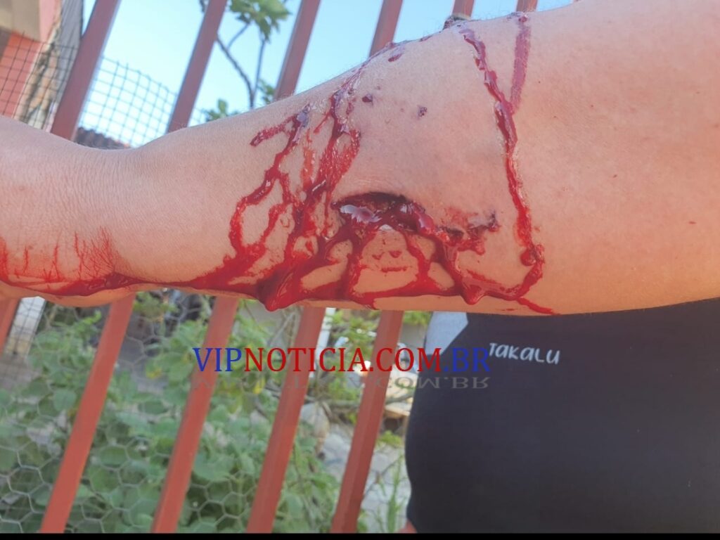 Uma guarnição  da Polícia Militar   compareceu ao endereço no bairro Primavera em  contato com os envolvidos a vitima,   informou que estava saindo de sua residência nessa tarde quando derepemte observou que um cachorro de grande estatura veio em sua direção. Esta com medo passou a gritar e pedir socorro foi quando um motoqueiro que passava ao local e também a testemunha veio socorrer, porém mesmo assim o referido cachorro ainda conseguiu efetuar várias mordidas no seu corpo, sendo as mais graves no seu braço esquerdo. Segundo a vitima e testemunha não a primeira vez que o cachorro sai à rua e oferece riscos aos transeuntes. Em contato com  dono do cachorro informou que pessoas estranhas já entraram por duas vezes na sua residência e comprou o cachorro para seguranca de sua família e que na data de hoje o cachorro conseguiu abrir o portão sozinho e saiu para a rua, foi quando  ouviu alguém gritando e pedindo socorro o dono do cachorro  disse que está disposto a arcar com as despesas hospitalares e que lamenta muito pelo acontecimento. O dono do cachorro  disse que vai arcar com as imedicações.