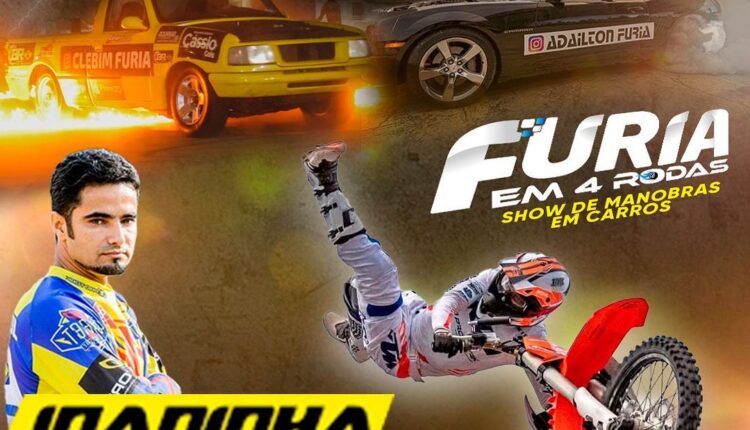 A partir das 17h, a adrenalina toma conta do chão com as apresentações radicais do multicampeão de motocross freestyle Joaninha e da sensação rondoniense Fúria em 4 Rodas, que garantem empolgar os amantes da velocidade e da emoção o evento vai acontecer no gerivaldão.