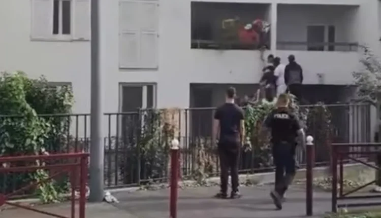 Diversos jovens do bairro de Saint-Jean, em Oise, França, escalaram um edifício em chamas para salvar uma moradora presa na própria varanda.