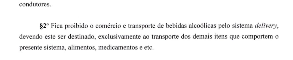 Também foi suspenso o Parágrafo 2º do Artigo 5°, onde o prefeito Isaú Fonseca – MDB – havia proibido a entrega de bebidas alcoólicas, assim, para estas lanchonetes, fica permitido entregar em qualquer dia da semana.