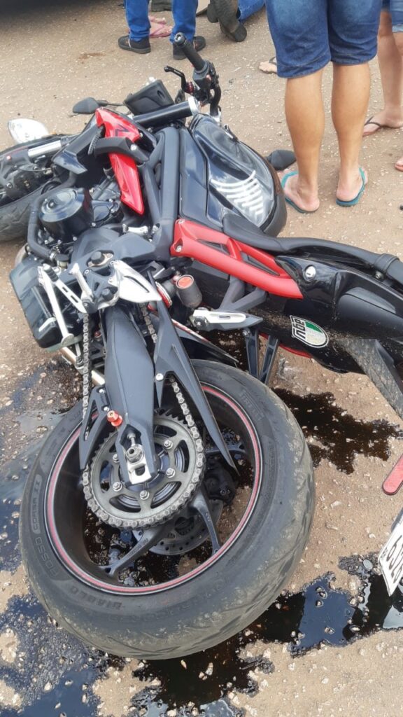 O PM estava em uma motocicleta de alta cilindrada e seguia na via principal quando em um determinado momento foi surpreendido pelo veículo, que o atingiu com um forte impacto.