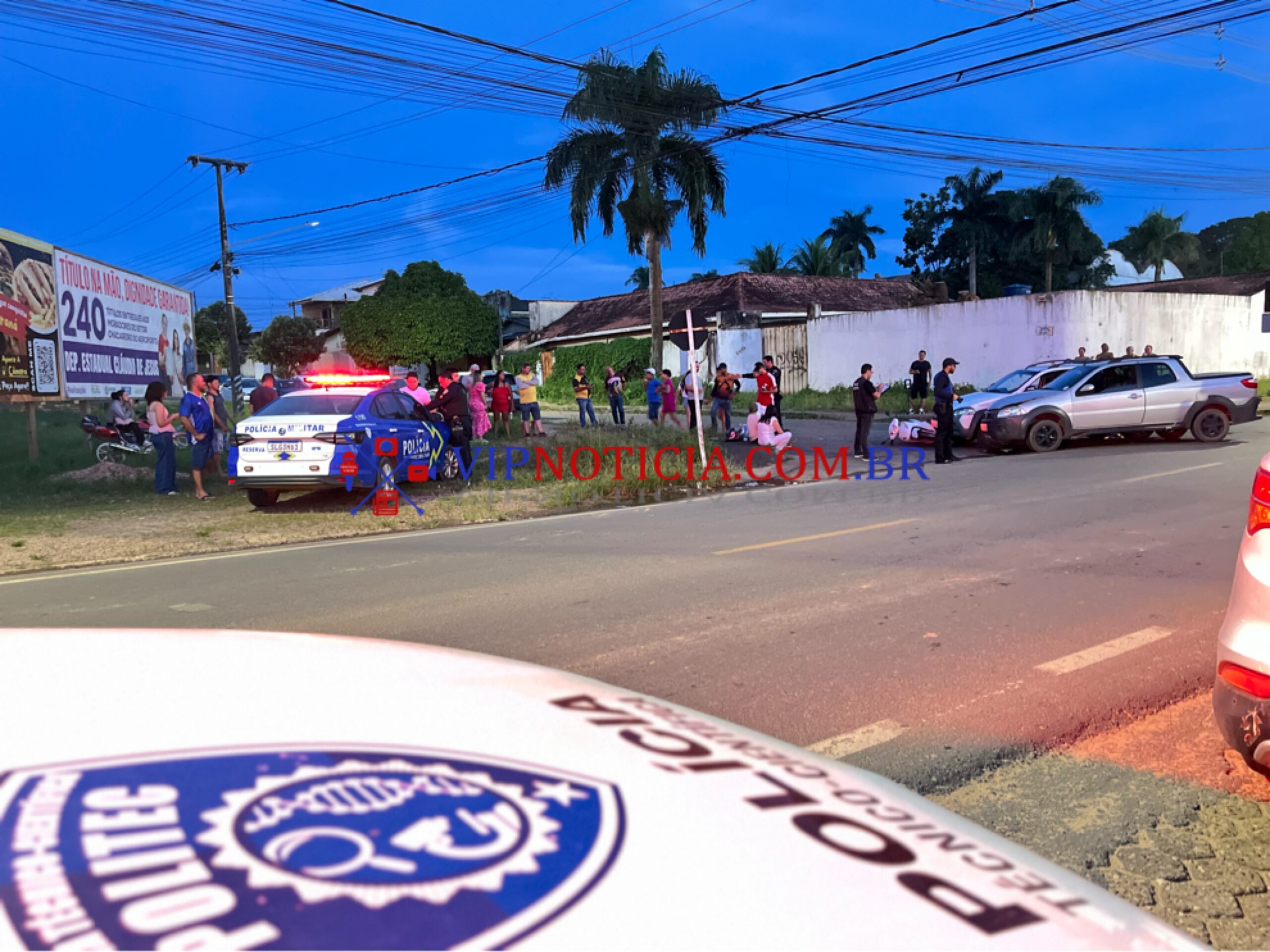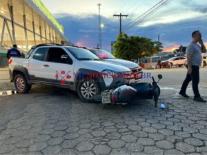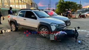 Um acidente registrado na tarde de sábado (25), no cruzamento da Rua Sena Madureira com a T-14, no bairro Cafezinho, em Ji-Paraná, deixou uma motociclista ferida. A colisão envolveu dois veículos Fiat Strada, sendo que um deles acabou atingindo a vítima, que aguardava para acessar a via em uma Honda Biz. A mulher foi arremessada ao solo e sofreu escoriações, recebendo atendimento no local. Os veículos tiveram danos consideráveis. Segundo testemunhas, um dos condutores apresentava sinais de embriaguez. A Polícia Militar atendeu a ocorrência e a perícia foi acionada para apurar as causas do acidente.