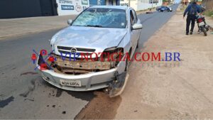 Na manhã deste domingo (07), um acidente de trânsito foi registrado no cruzamento da Avenida Brasil com a T-25, no Segundo Distrito de Ji-Paraná. A ocorrência envolveu um automóvel Astra e uma motocicleta.