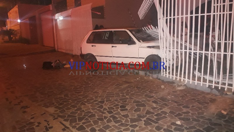 De acordo com informações, um veículo Fiat Uno Mille guiado por um indivíduo “mamado” (bêbado), subindo a Av. Maringá e ao chegar entre T-12 e T-13, perdeu o controle da direção vindo a “pular” o canteiro que divide as pistas, subindo a calçada arrebentando o portão de uma residência.
