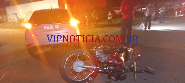 Com a batida na lateral do carro o condutor da moto sofreu escoriações e uma fratura na perna direita.