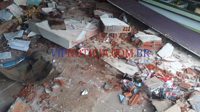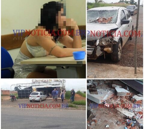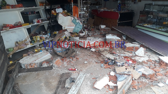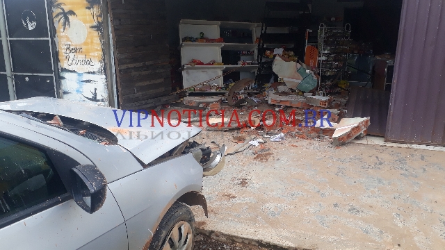 Um carro modelo VW Gol trafegava pela rua Principal do Park Brasil e quando foi adentrar a L-94, passou direto derrubando parede com porta destruindo todo interior do comércio.