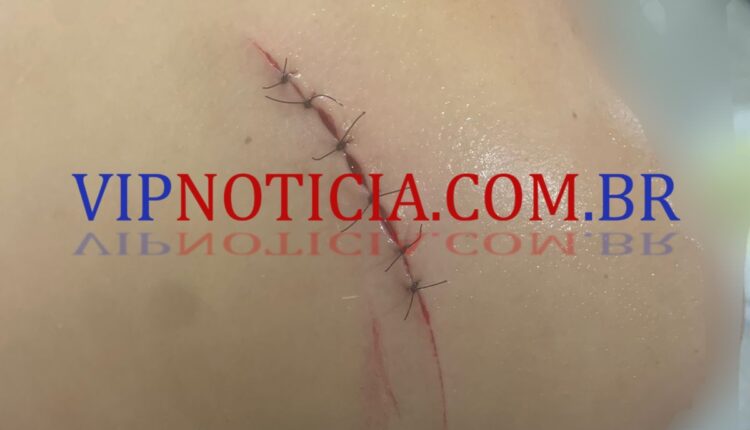 A jovem em questão apresenta várias escoriações pelo corpo e cortes aparentemente causados por faca nos ombros esquerdo e direito.