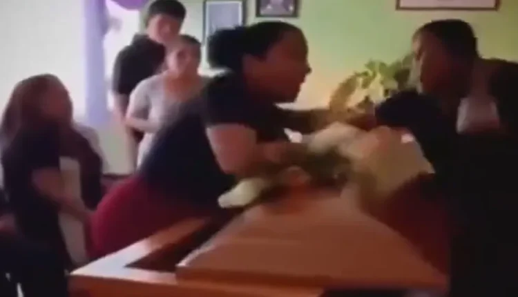 No vídeo – que pode ver acima -, as duas mulheres começam a discutir sobre o caixão no meio, enquanto as restantes pessoas assistiam.