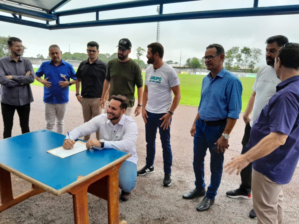 Nesta sexta-feira (07), o deputado estadual Nim Barroso (PSD) acompanhou o prefeito de Ji-Paraná, Affonso Cândido (PL), na assinatura da ordem de serviço que autoriza a restauração da iluminação do Estádio Municipal Antônio Bianco, o “Biancão”. Com a nova iluminação, o Estádio poderá, em breve, receber torcedores e jogadores com mais conforto e qualidade.