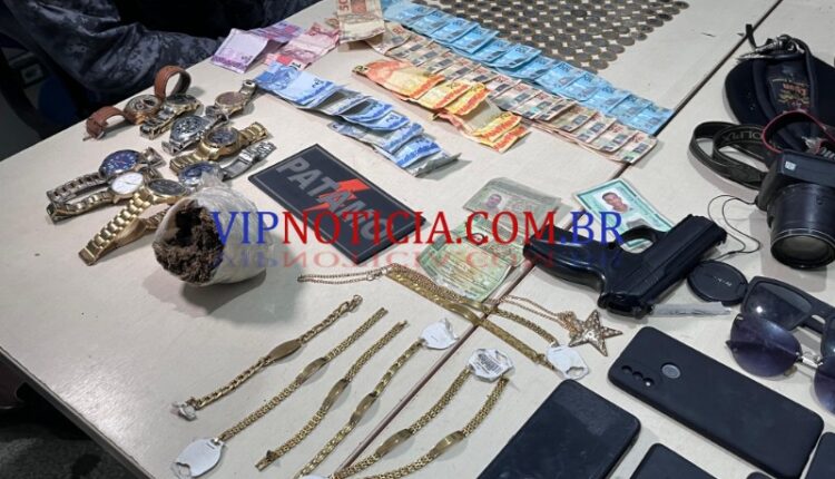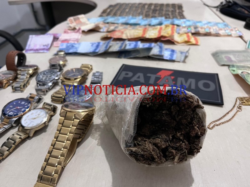 No final da tarde desta quarta-feira,09/10, a guarnição do PATAMO estava em patrulhamento pela rua Don Augusto e se deparou com alguns usuários em frente a um bar. Ao ser feita a abordagem o proprietário do bar tentou fugir, mas foi abordado. Durante as buscas pessoais foi encontrado algumas porções de Pedra de crack com alguns usuários. Em continuação as buscas, já no interior do bar foram encontradas uma porção de maconha de aproximadamente 200 g e também algumas pedras de crack, dinheiro, vários relógios e celulares. Ainda no interior do bar foram encontradas várias ferramentas elétricas como, máquina de solda, parafusadeira, esmeriladeira, furadeira, lixadeira, plaina e muitas fermentas, além de algumas caixas de som, botijas de gás, utensílios domésticos como facas novas e conjuntos para churrasco, lanternas e peças de roupa com etiquetas de algumas lojas da cidade, entre outros produtos. No local havia muito dinheiro espalhado pelo chão que totalizou cerca de Dois mil reais (2.000 BRL). Diante dos fatos o casal que seria responsável pelo local foi detido e levado para UNISP. Na delegacia, o acusado disse aos policiais que alguns objetos como relógios encontrados na casa seriam para colecionar, o que não convenceu os policiais.