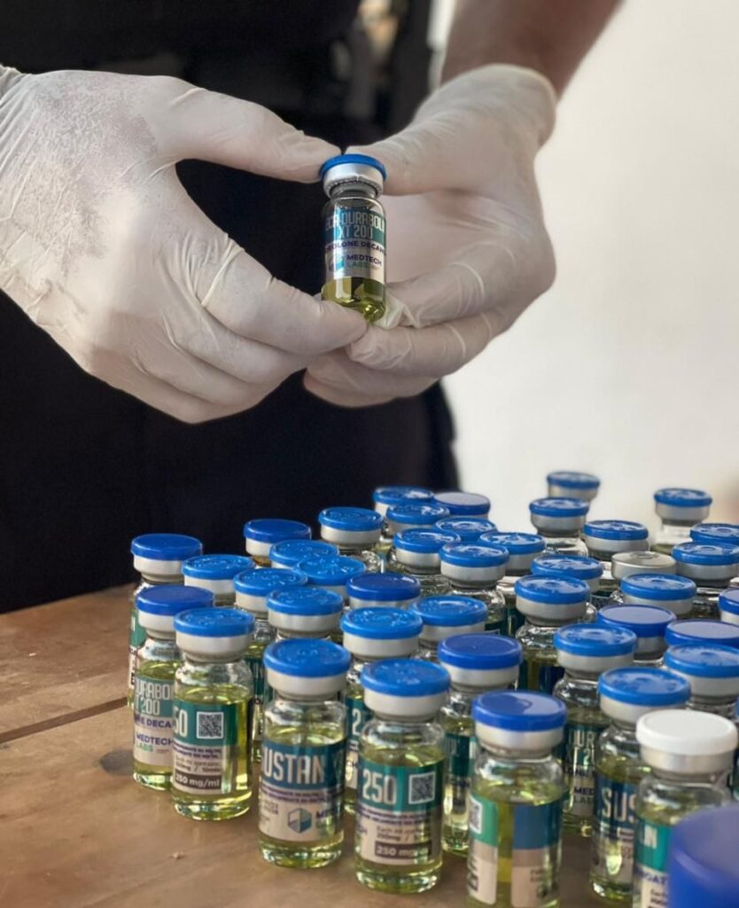 Durante a ação, um dos investigados foi preso em flagrante, por manter em depósito grande quantidade de anabolizantes importados, sem autorização dos órgãos competentes.