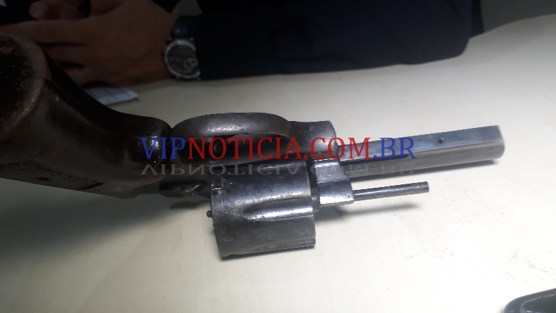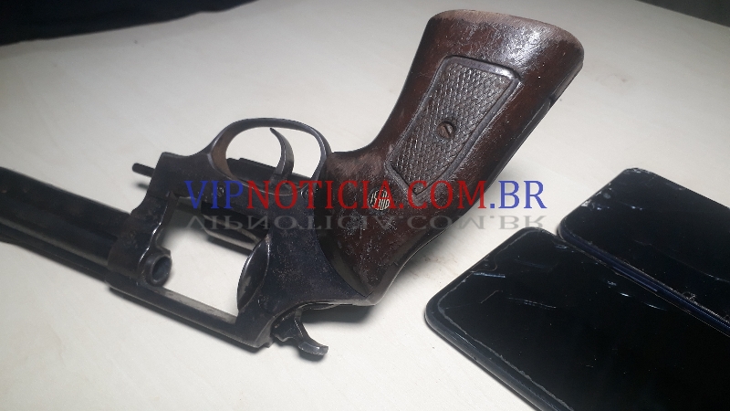 Ao perceber a presença da polícia, o elemento que estava portando uma arma de fogo em sua mão, correu para dentro do quintal.