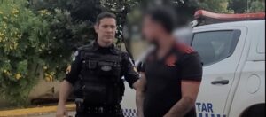 O acompanhamento seguiu até a Rua T-26, nas proximidades da antiga pista de kart, onde o veículo parou em frente a uma oficina. Neste momento, mesmo diante da resistência por porte do suspeito, foi realizada a abordagem policial com apoio de uma segunda guarnição.