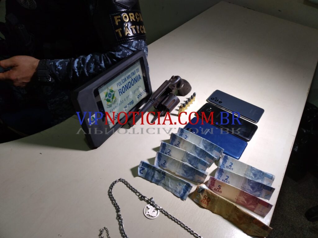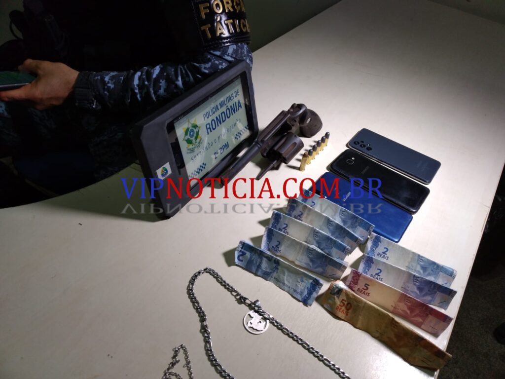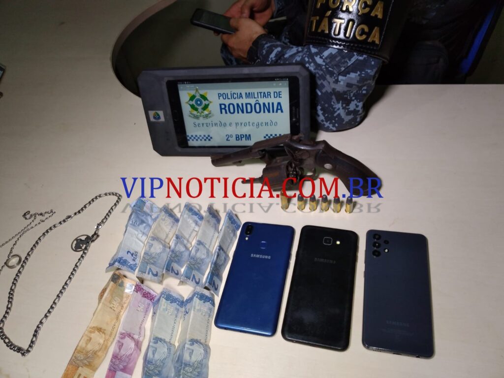 A quadrilha era composta pelo Foragido da Justiça, [L. J. de S. B.], “vulgo XRE ou 66”, [V. J. R.], [A. D. de O.] e um adolescente de 17 anos. Com o bando, os PM’s localizaram um revólver calibre 38, com cinco munições intactas e uma “picotada”, e vários aparelhos celulares de procedência duvidosa.