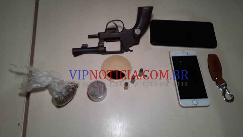 Dentro da casa, os policiais acabaram localizando as chaves dos veículos e unm revólver calibre 32, municiado, que foi usado no assalto.