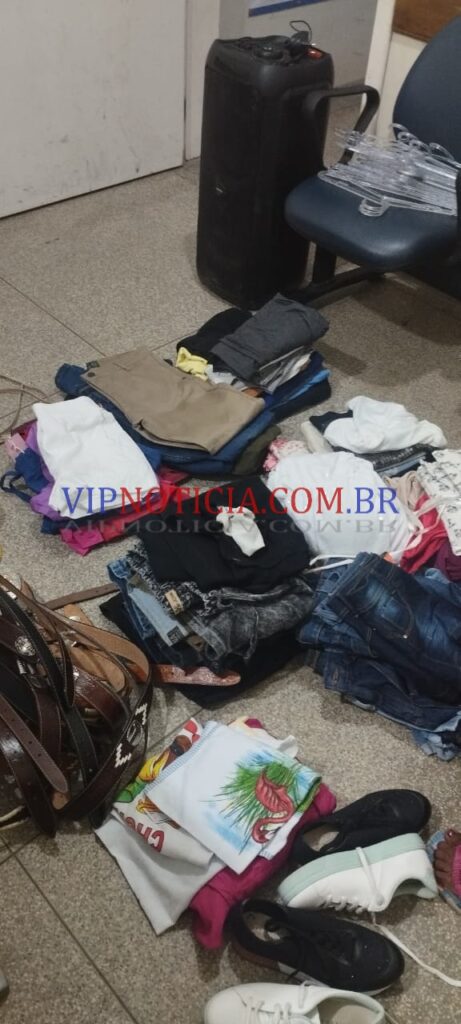 Com o apoio de outras guarnições a polícia realizou a incursão no local solicitando averiguação. No quintal em um varal haviam várias peças de roupas com etiquetas e uma caixa de som de alto valor.