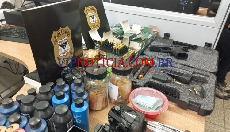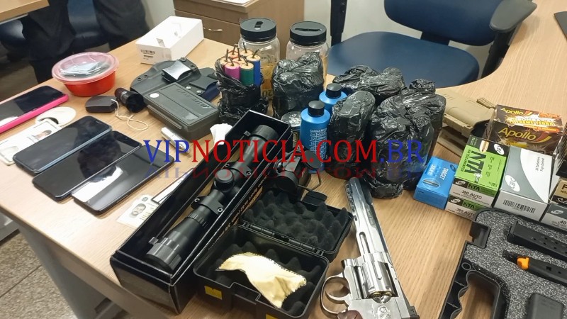 São Cristóvão, as autoridades encontraram munições de diversos calibres, duas armas de Airsoft, uma pistola 40, e diversos itens de