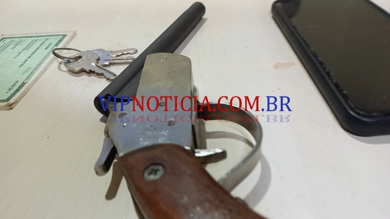 Foi localizado na casa com os elementos, a garrucha calibre 22 usada no assalto, motocicleta e o dinheiro tomado da frentista, cerca de 200 reais.