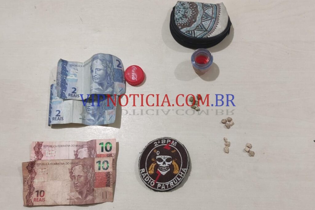 Ao ser realizado a abordagem a mesma, em seu bolso foram localizados várias pedras de crack e certa quantia em dinheiro oriundos das vendas.