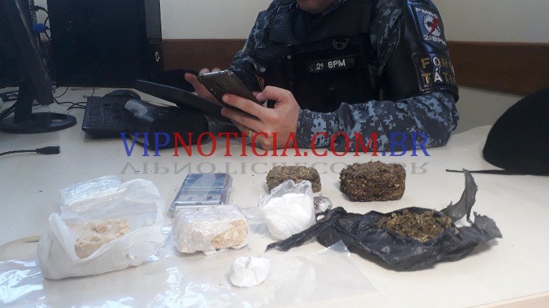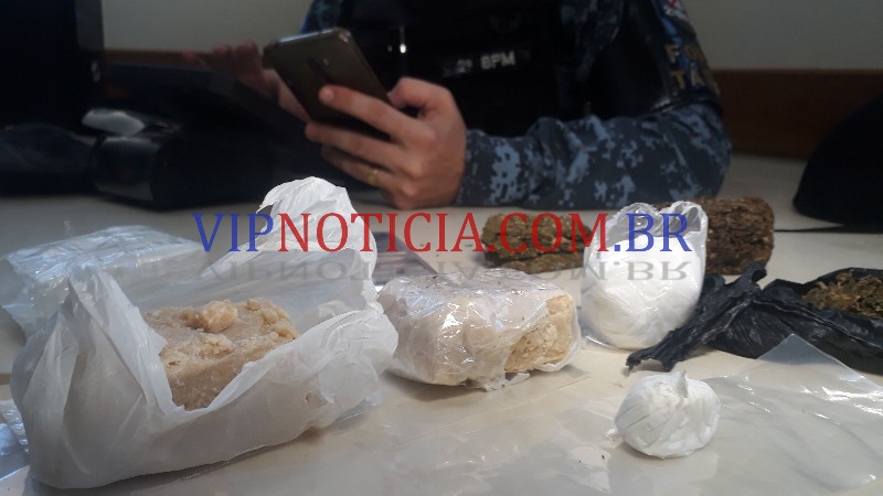 O menor estava sendo aliciado por um maior morador do bairro Bela Vista, pra onde os policiais se deslocaram e localizaram em sua casa drogas escondidas por vários locais.
