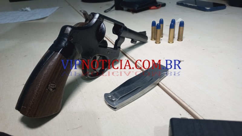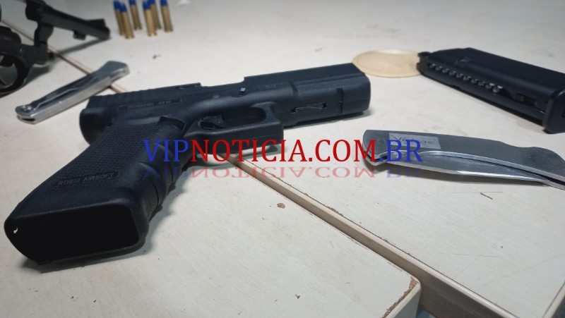 Que portava um simulacro de arma, enquanto, o outro suspeito, estava com um revólver, calibre 38,com seis muniçoes.