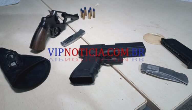 A polícia foi acionada por moradores preocupados com a presença de dois indivíduos armados que, de acordo com relatos, ameaçavam os jovens que saíam de uma escola próxima. Em resposta rápida, a equipe da PM se deslocou ao local, onde conseguiu localizar as vítimas e dete-los os suspeitos.