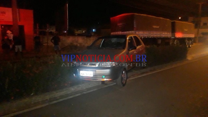 Câmeras de segurança gravo o momento em que o motorista do veículo pálio não percebeu outro veículo estacionado na lateral da via batendo violentamente.