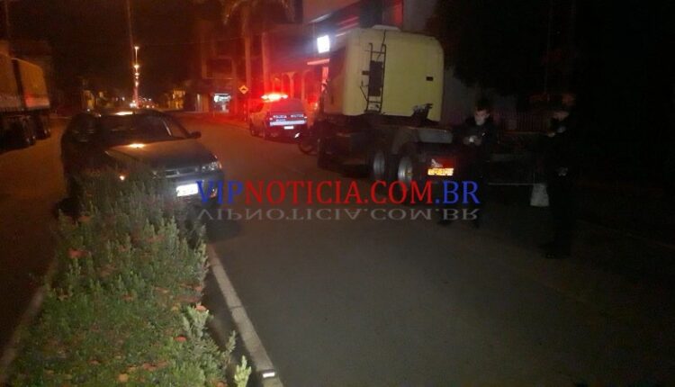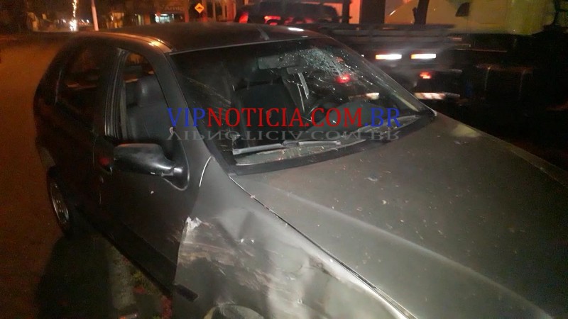 Câmeras de segurança gravo o momento em que o motorista do veículo pálio não percebeu outro veículo estacionado na lateral da via batendo violentamente.