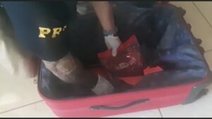 O passageiro. João da Silva Gadelha, 18 anos natural e morador da cidade de Rio Branco/AC. Viajava na poltrona número 31 tinha destino. Rio Branco a João Pessoa/PB. Ao efetuar uma revista na mala foi encontrado em um fundo falso a quantia de 2.28 kg de substância que se presume pasta base de cocaína.