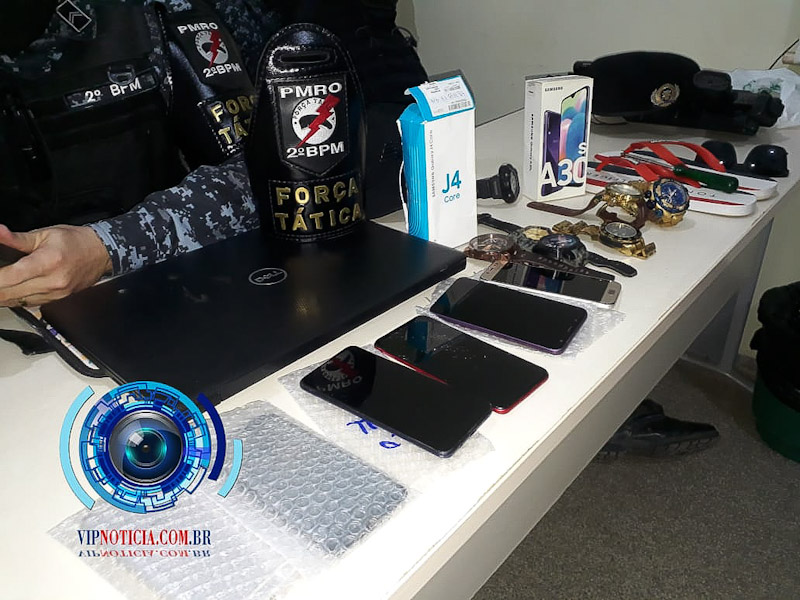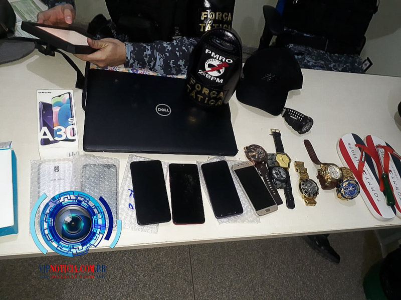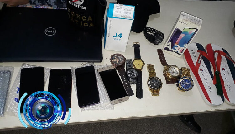 Quando o policial comunicou o fato a central o Raio acabou abordando os elementos em um veículo. E com eles foi encontrado varios objetos que pode ser furtado entre eles relógios, celulares e até chinelo.