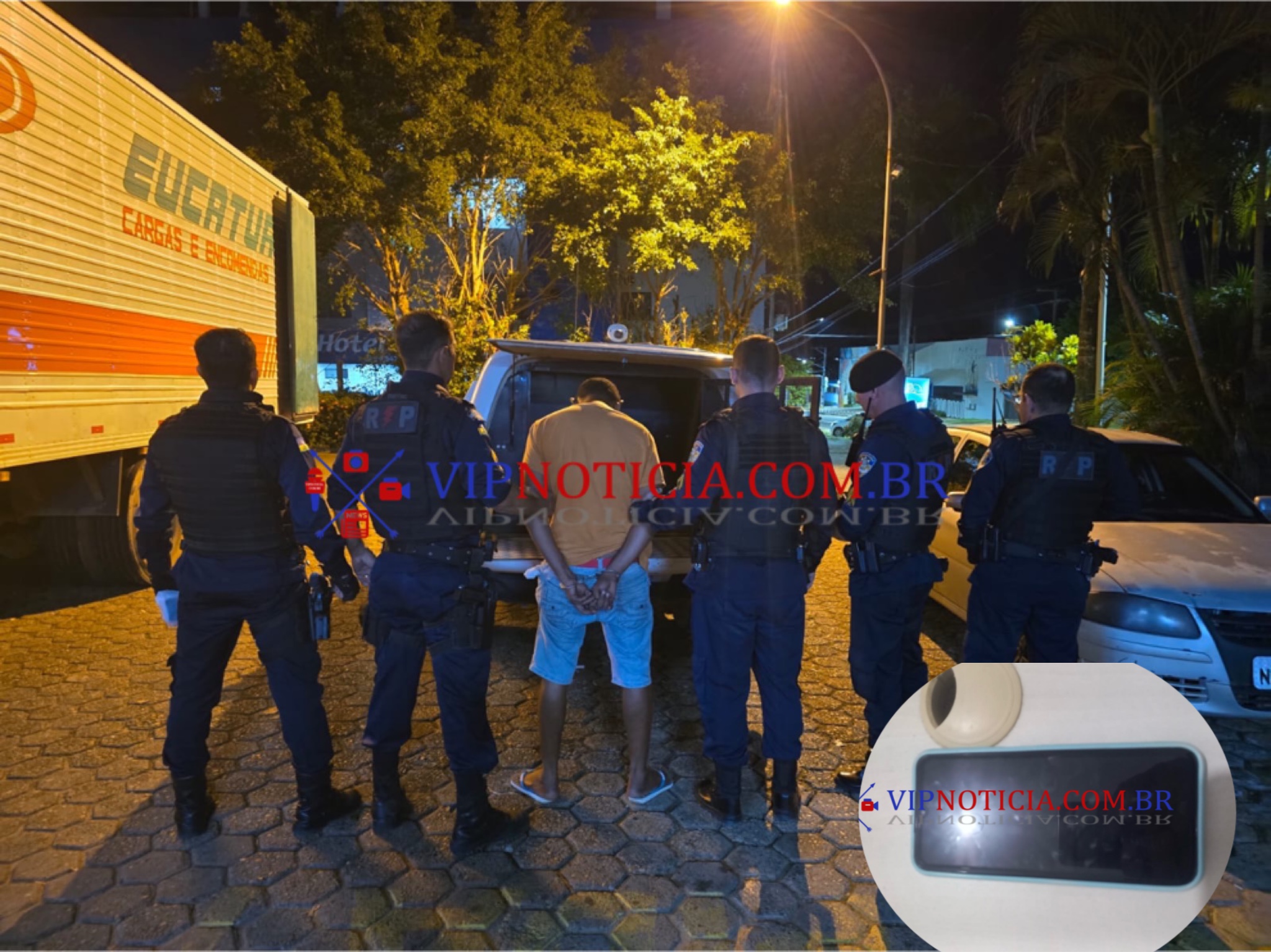 Homem com antecedentes criminais foi localizado dentro de ônibus após ação rápida da Polícia Militar e trabalho de inteligência
