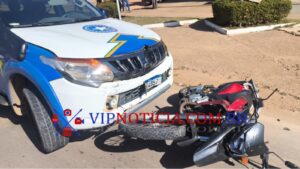 A PM iniciou diligências e localizou o suspeito nas proximidades da rua Hermínio Victorelli, no bairro Bela Vista. Ao perceber a aproximação da guarnição, ele tentou fugir em alta velocidade pelas ruas do 1º Distrito. A perseguição terminou quando o indivíduo colidiu com uma viatura do Setor 03 da PM, sofrendo fraturas no fêmur, ulna e patela do joelho.