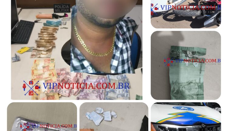 Durante a abordagem, os policiais encontraram com o homem mais de R$ 1.500 em espécie, uma nota falsa de R$ 420, nove comprimidos de tadalafila (medicamento usado para impotência sexual), um pênis de borracha e seus documentos pessoais.