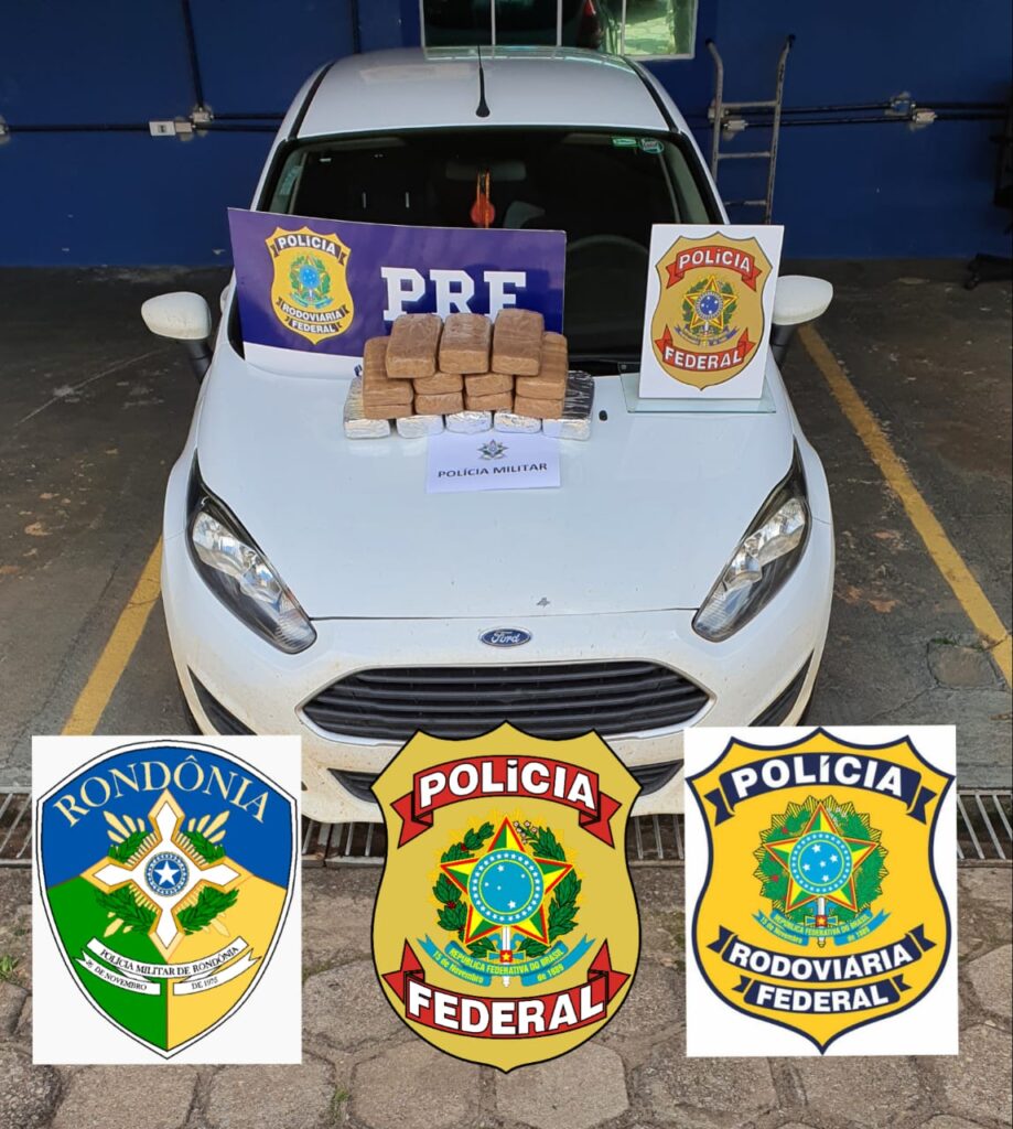 A droga ilícita foi embarcada em Rondônia e seria entregue em Cuiabá/MT. No veículo de passeio estavam também a esposa do infrator e duas crianças (7 e 2 anos de idade). A ocorrência foi registrada nesta segunda-feira (26).