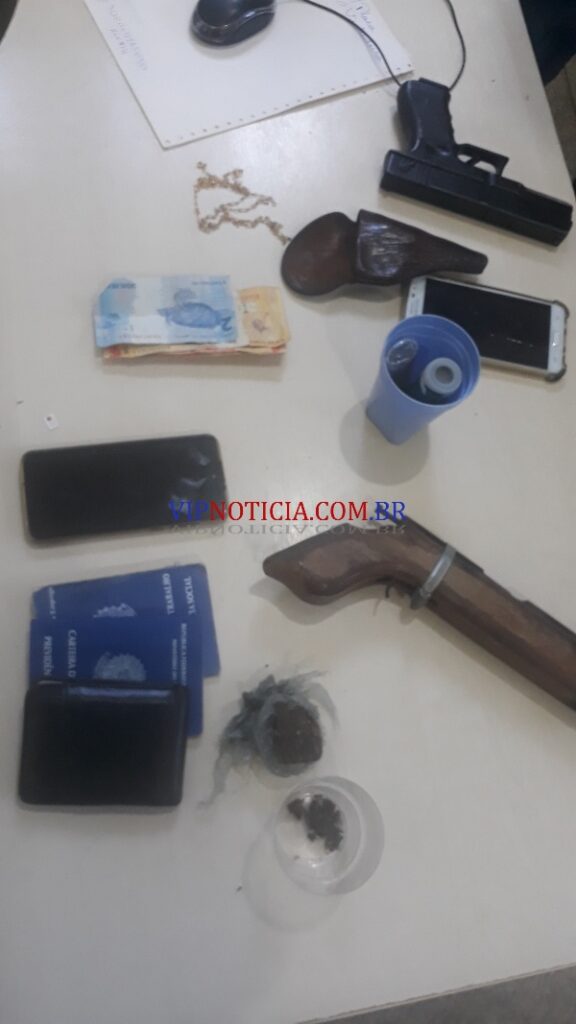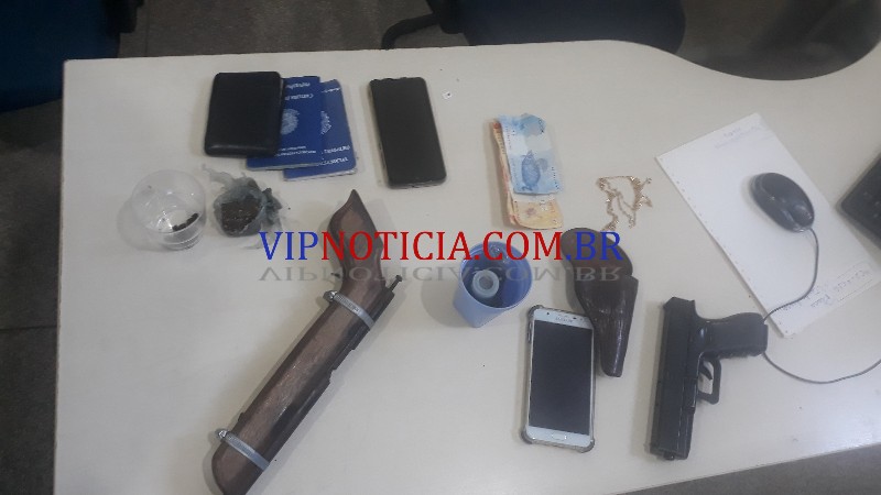 na casa, foi constatado porção de maconha, simulacro, garruncha e uma motocicleta roubada. Lucinei Jackson tem um mandado de prisão em aberto e assumiu a propriedade da motocicleta
