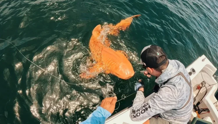 Um tubarão-lixa de quase dois metros e com uma coloração alaranjada incomum foi avistado na Costa Rica durante uma expedição de pesca organizada pela empresa turística Parismina Domus Dei.