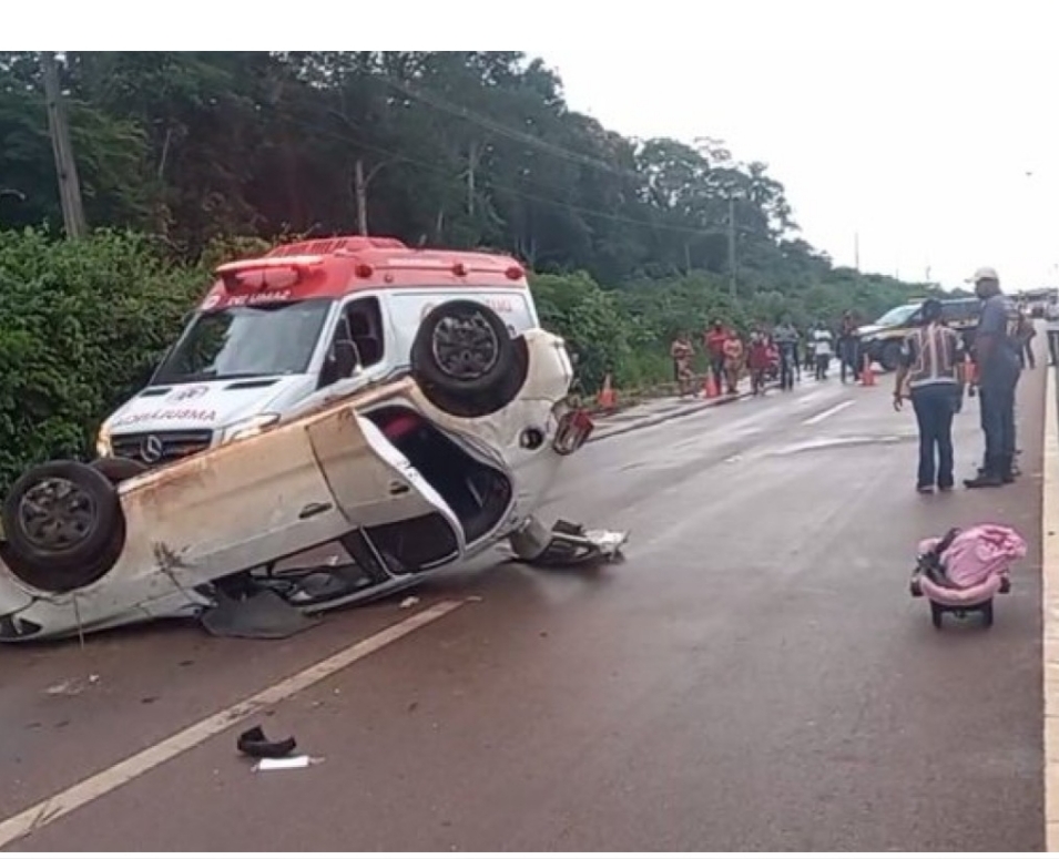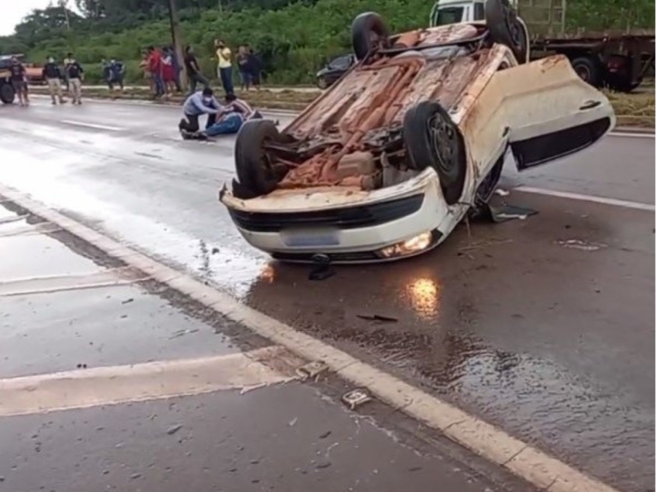 Na tarde desta quinta-feira (18), um grave acidente de trânsito foi registrado pela Polícia Rodoviária Federal, onde um carro modelo Gol branco capotou por várias vezes com três adultos e duas crianças no KM 5 da BR-364 sentido a Universidade Federal de Rondônia.