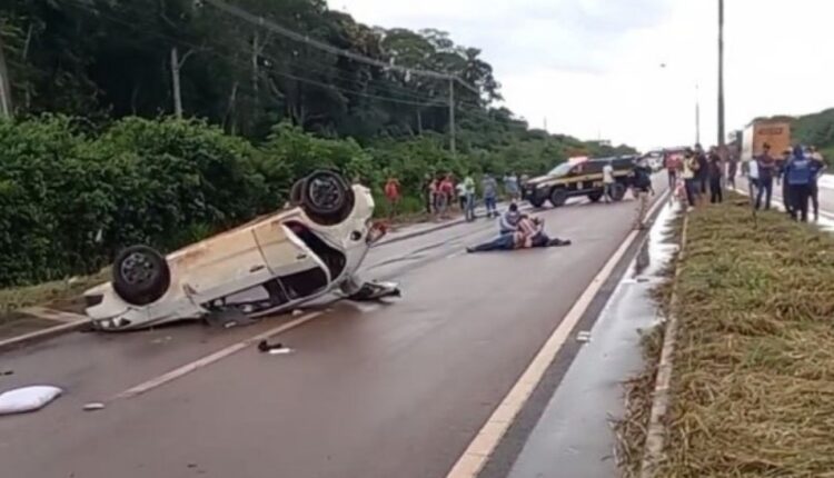 Na tarde desta quinta-feira (18), um grave acidente de trânsito foi registrado pela Polícia Rodoviária Federal, onde um carro modelo Gol branco capotou por várias vezes com três adultos e duas crianças no KM 5 da BR-364 sentido a Universidade Federal de Rondônia.