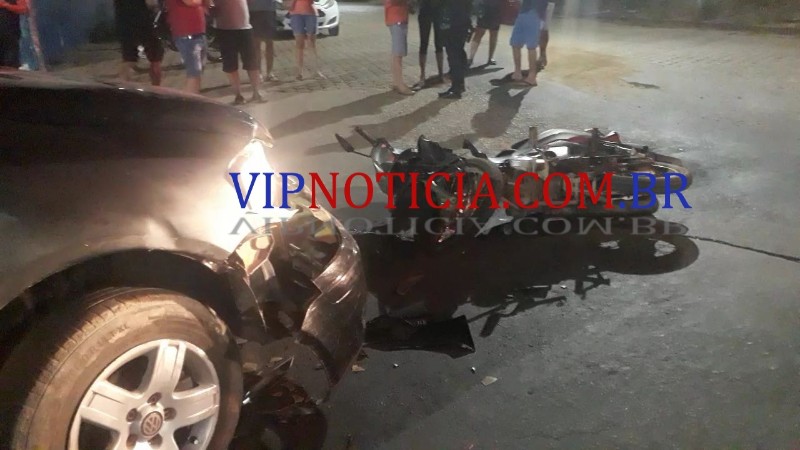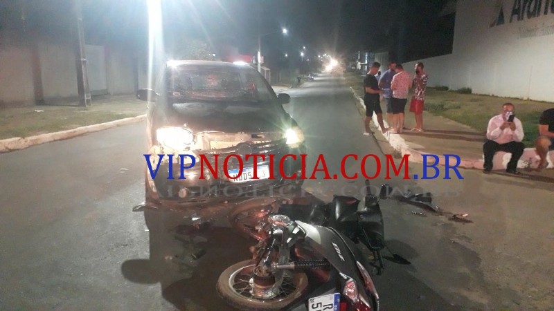 VEÍCULO INVADE PREFERÊNCIA ENTRA NA FRENTE DE MOTOCICLETA NA AV. BRASIL E CAUSA ACIDENTE, EM JI PARANÁ