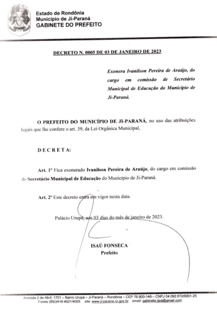 O vereador Brunno Carvalho, que capitaneou a denúncia formalizada pelo trio, relatou à reportagem Ivanilson Pereira Araújo foi exonerado pelo prefeito Isaú Fonseca, no dia 03 de janeiro deste ano.