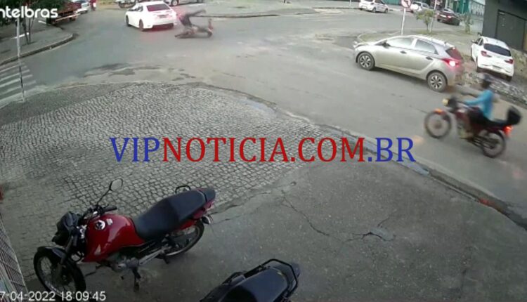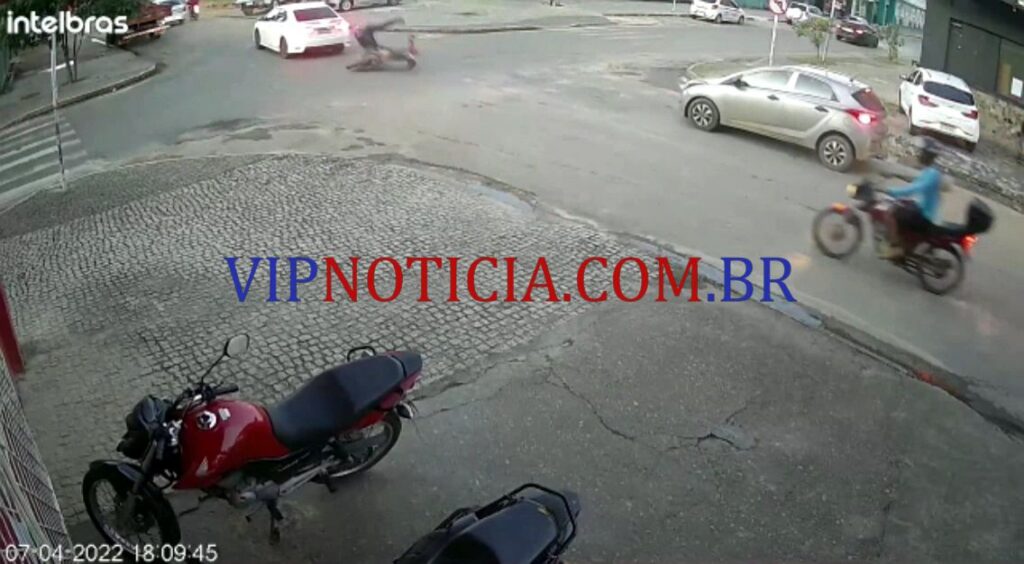O acidente foi registrado por câmeras de segurança de uma loja que fica localizada na T-14, cruzamento da Avenida Brasil, segundo distrito.