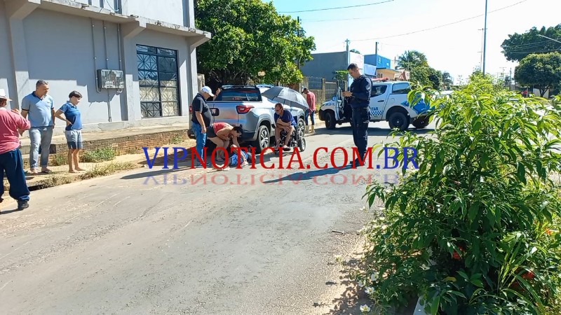 A Caminhonete Fiat Toro seguia sentido Biancão pela Av. Maringá, quando no cruzamento da T-25 um motociclista avançou a preferencial, seguindo sentido Rua Manoel Franco para K-5.