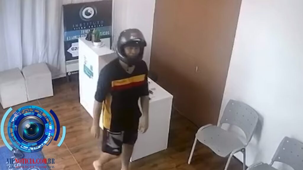 No vídeo, a vítima chega no local em uma bicicleta. Logo em seguida, o suspeito chega com capacete na cabeça e busca a vítima. Para evitar qualquer barulho, ele até tira o chinelo, antes de praticar o crime.