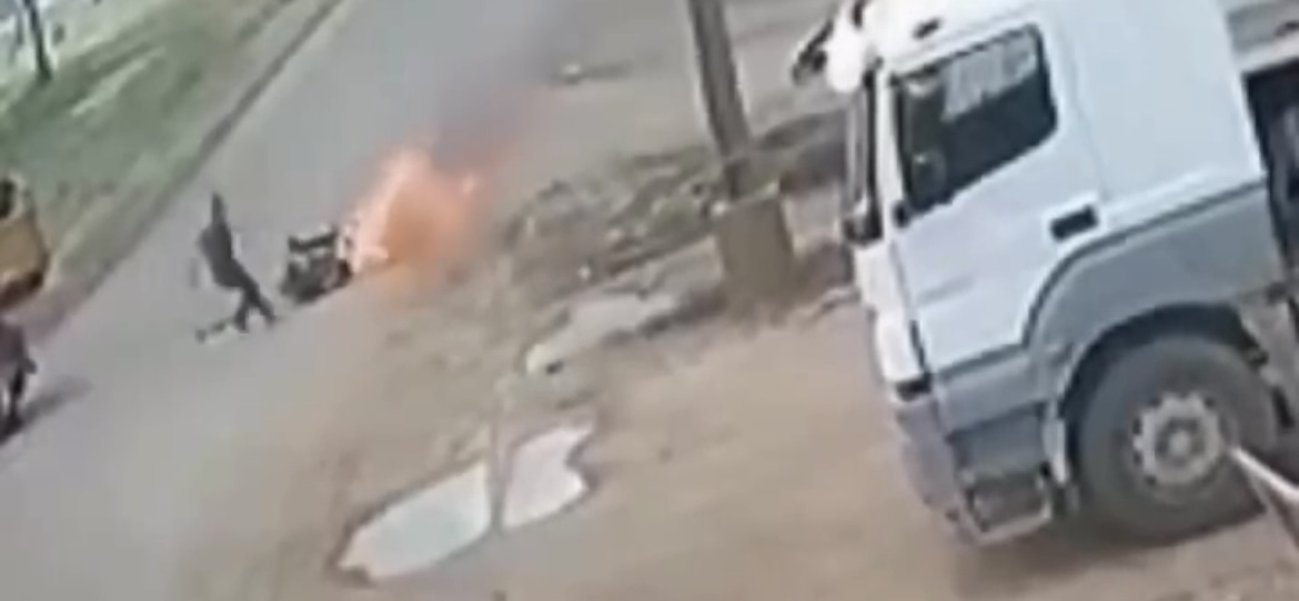 Um homem ainda não identificado sofreu graves queimaduras pelo corpo após colidir a motocicleta que conduzia em uma caçamba, no bairro Bela Vista, em Mirassol D’Oeste (MT), nesta segunda-feira (29).