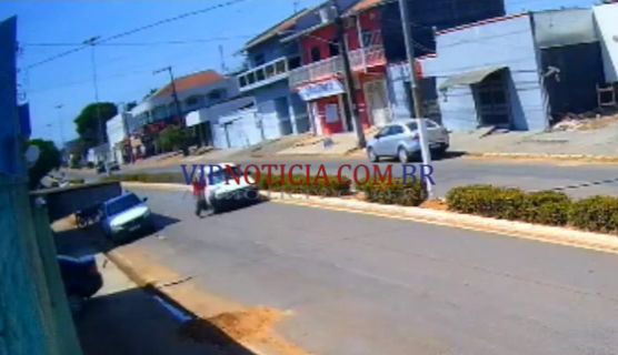 As imagens de câmeras de segurança registraram o exato momento em que um homem sai da calçada e atravessa a Avenida e é atingido por um veículo VW Gol que transitava pela via, sentido Vila Jotão.