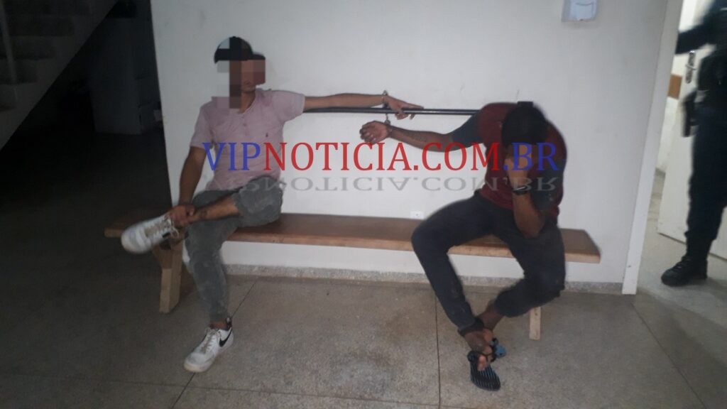 Imediatamente a guarnição do setor 03 se deslocou para o endereço onde em conversa com a vitima colheu informações e características dos indivíduos e após realizar algumas diligencias pelo bairro Nova Brasília dois homens com as mesmas características foram localizados e posteriormente foram reconhecidos pela vítima através das imagens de monitoramento.
