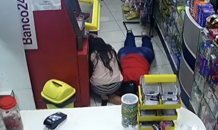 Câmeras de segurança da drogaria registraram o momento da perseguição e execução.