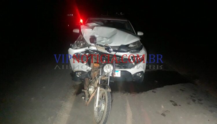 sentido pela RO-135, quando uma caminhonete Fiat Toro colidiu na traseira do motociclista arremessando-