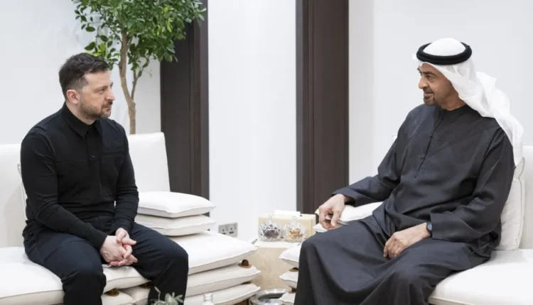 Os presidentes da Ucrânia e dos Emirados Árabes Unidos (EAU) se reuniram neste sábado para discutir a situação no Oriente Médio, o bloqueio no estreito de Estreito de Ormuz e a implementação de sistemas de defesa aérea ucranianos nos Emirados.